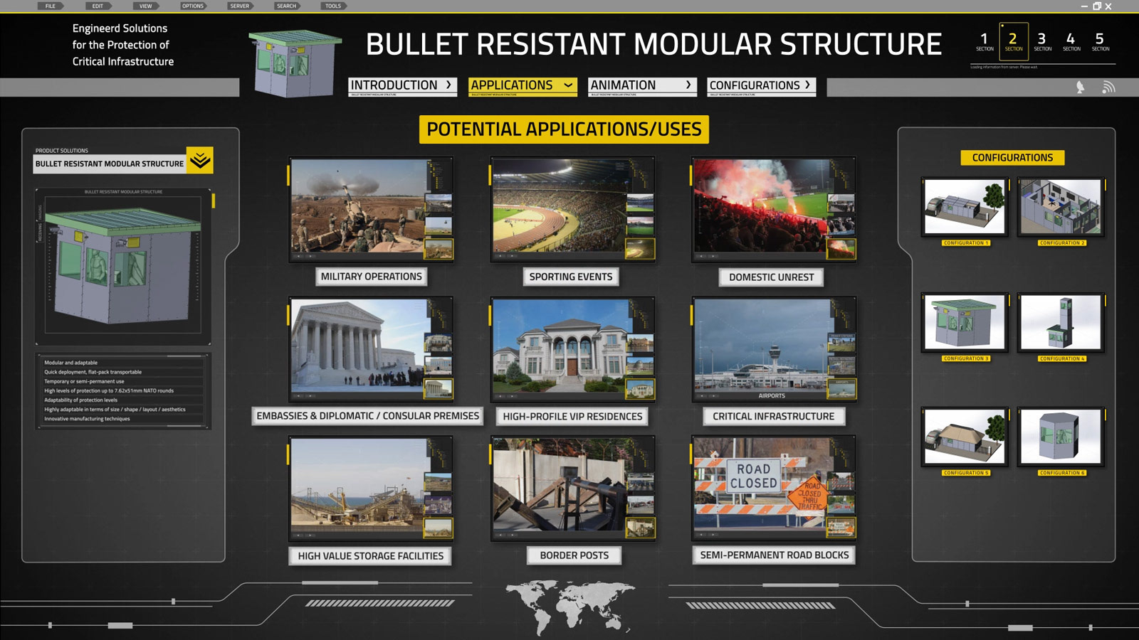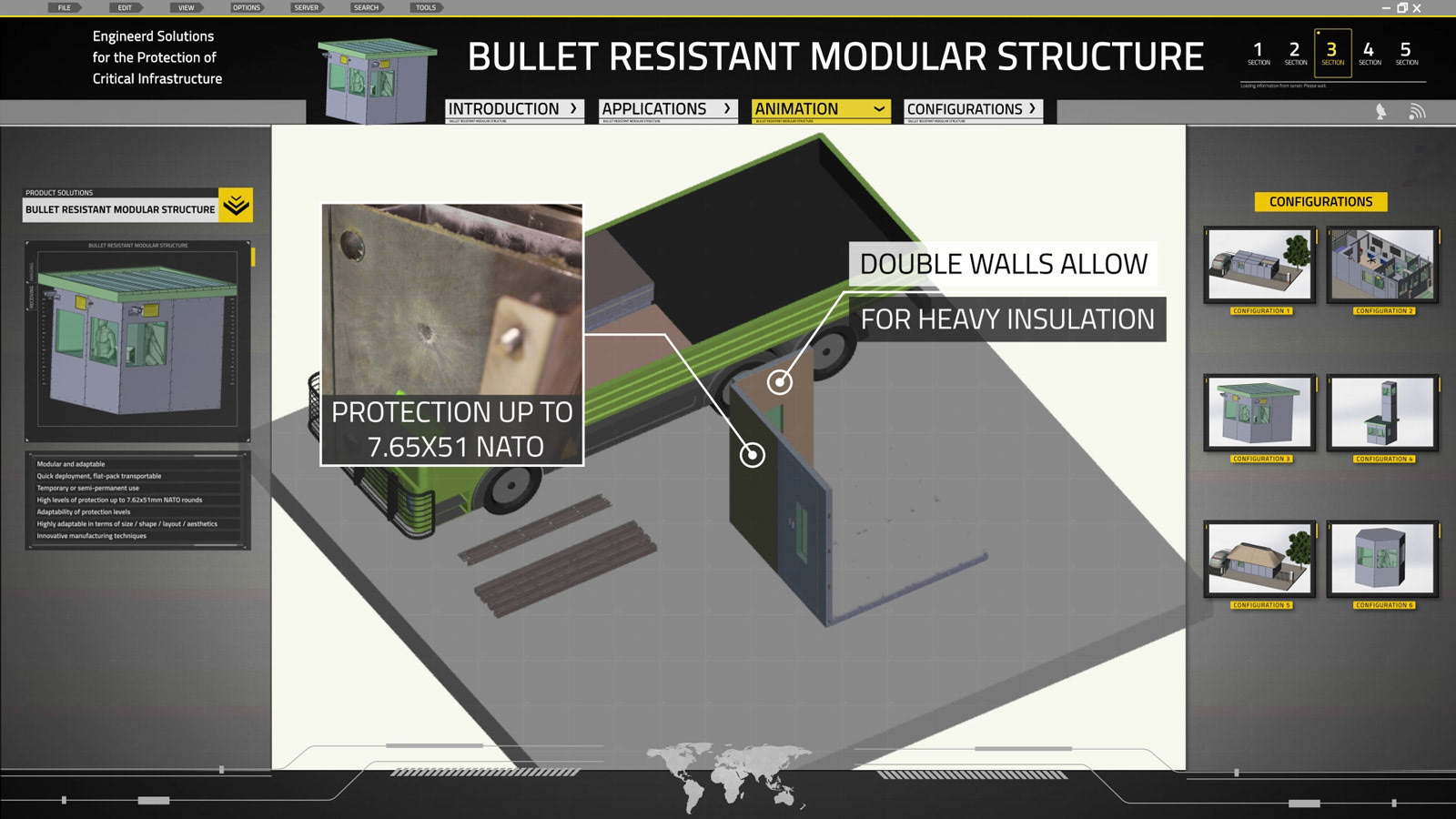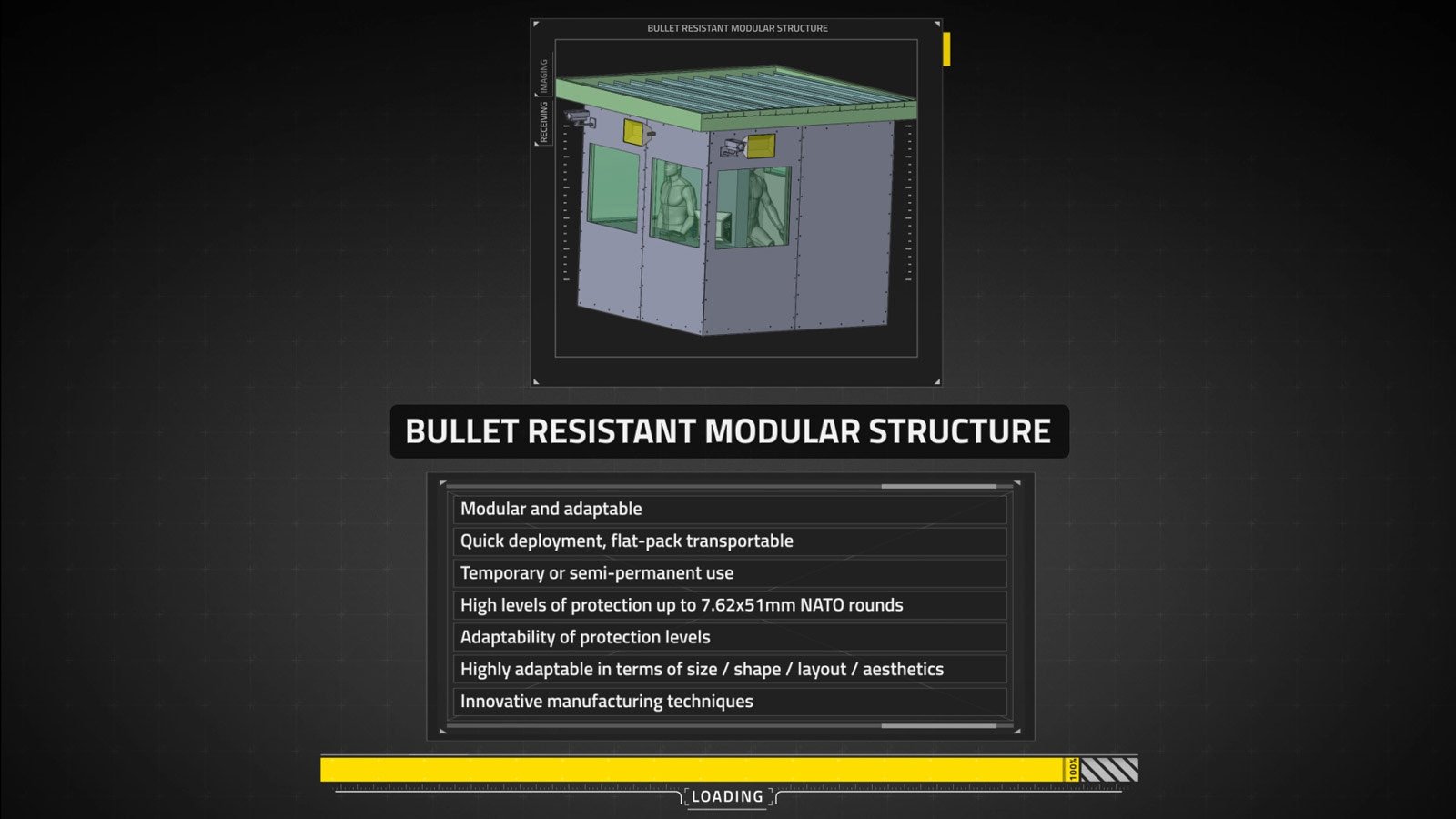 CGI animation video created for the Modular Bullet Resistant Structure (MBRS) designed by Interlock Systems.